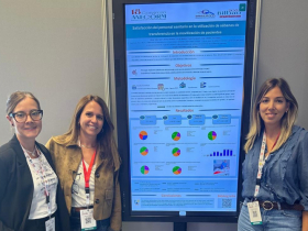 Les infermeres, Anna M. Martínez, cap de la Unitat de Gestió de Material, Mireia Vallès, supervisora de la UCI i Monica Moutinho, supervisora de la planta 10, van presentar el pòster Satisfacció del personal sanitari en l’ús de llençols de transferència en la mobilització de pacients.